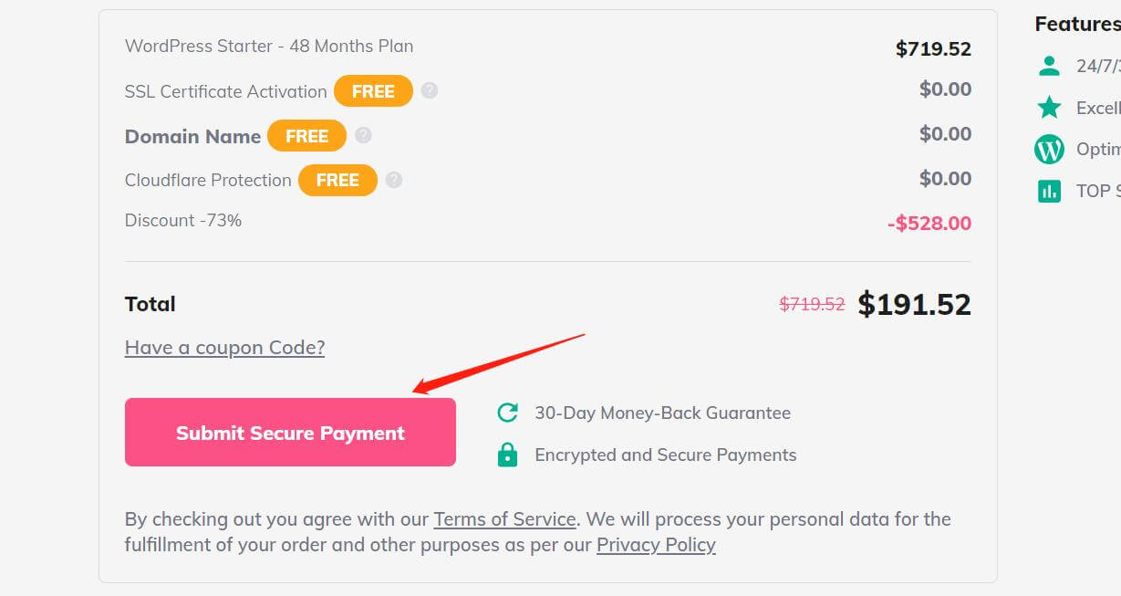选择好你要的套餐之后,点击Select按钮,Hostinger会跳转到结算页面。